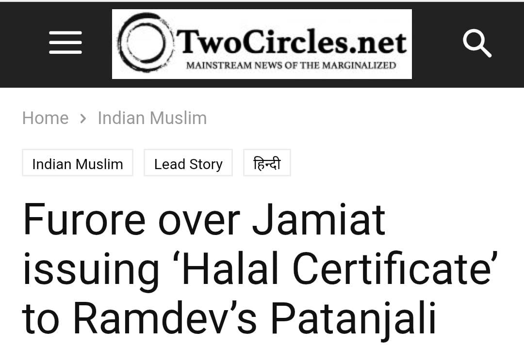 Furore over Jamiat issuing ‘Halal Certificate’ to Ramdev’s Patanjali – TwoCircles.net https://share.google/uV9RoGhzf8GfiT60